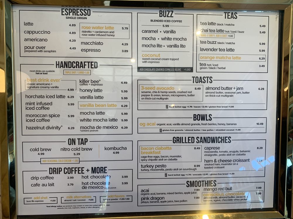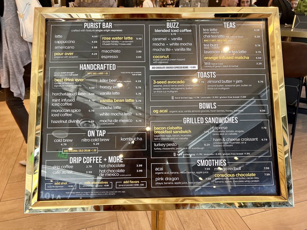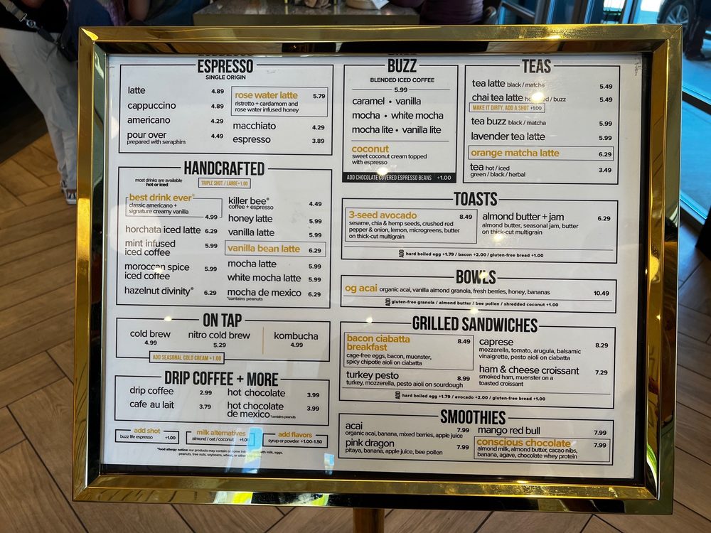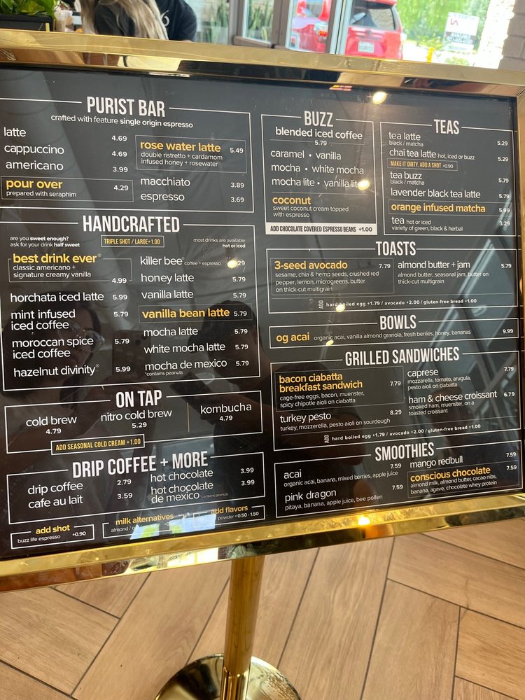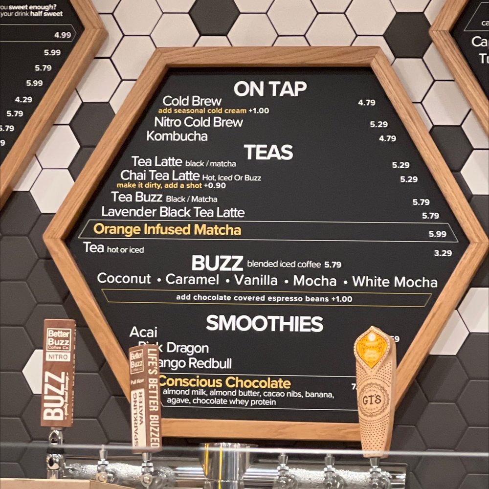 Introducing the menu at Better Buzz, located in Temecula, CA, offers a wide selection of coffee, tea, juice, smoothies, sandwiches, and pastries. Their Buzz Favorites include the popular Pumpkin Spice Latte, Pumpkin Cold Brew, and Pumpkin Chai. Customers rave about the Elote Avocado Toast, Acai Bowl, and Yogurt Bowl for a delicious and healthy meal option. The selection of pastries, croissants, and cookies are also a hit, with options like Ube Cookie, Pistachio Croissant, and Chocolate Chip Cookie available. The atmosphere at Better Buzz is described as classy with moderate noise levels, private lot parking, and free Wi-Fi. With various amenities such as outdoor seating, drive-thru, catering, and waiter service, Better Buzz provides a comfortable and enjoyable dining experience for patrons. Whether you're looking for a caffeine fix or a satisfying meal, Better Buzz is the place to be.